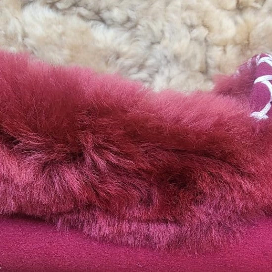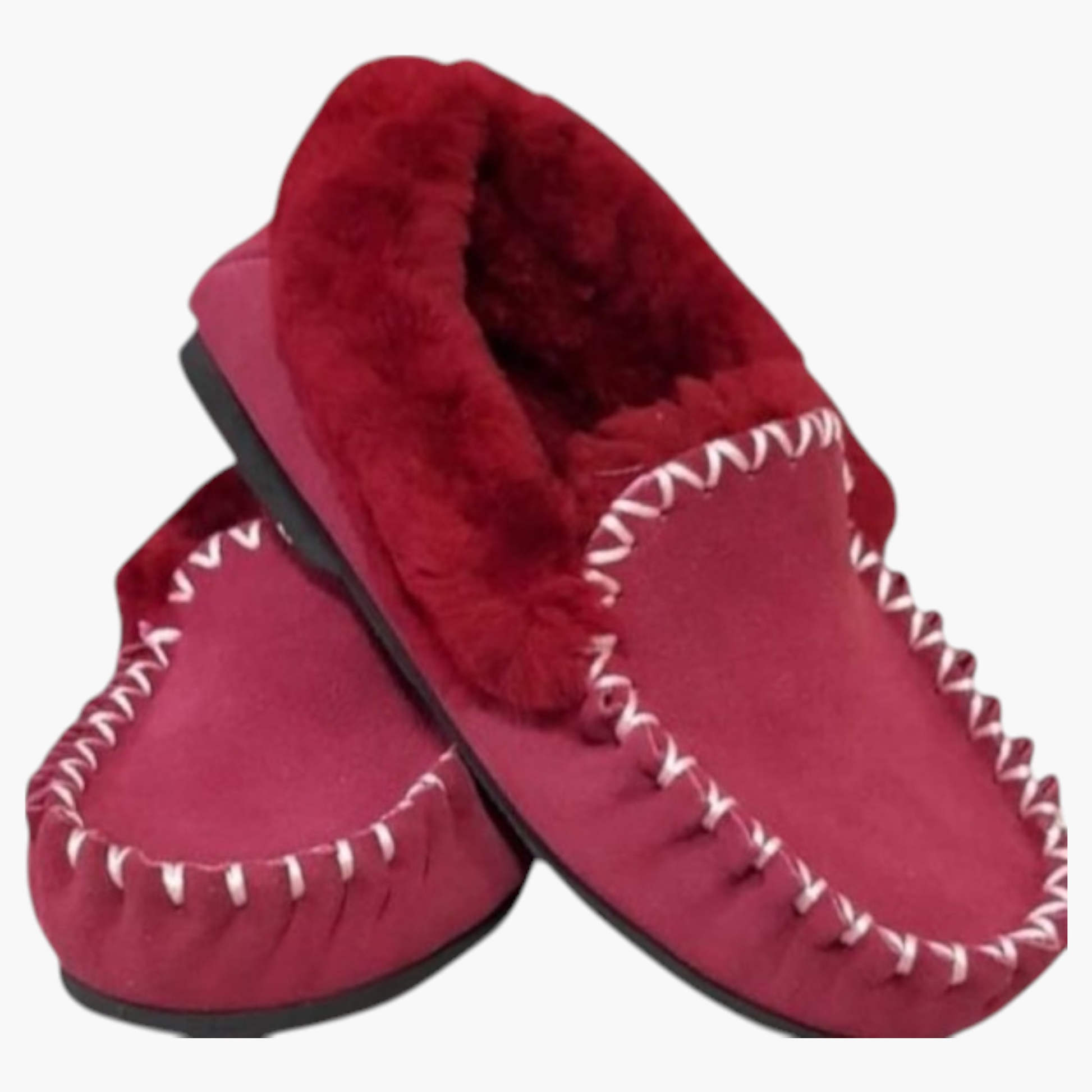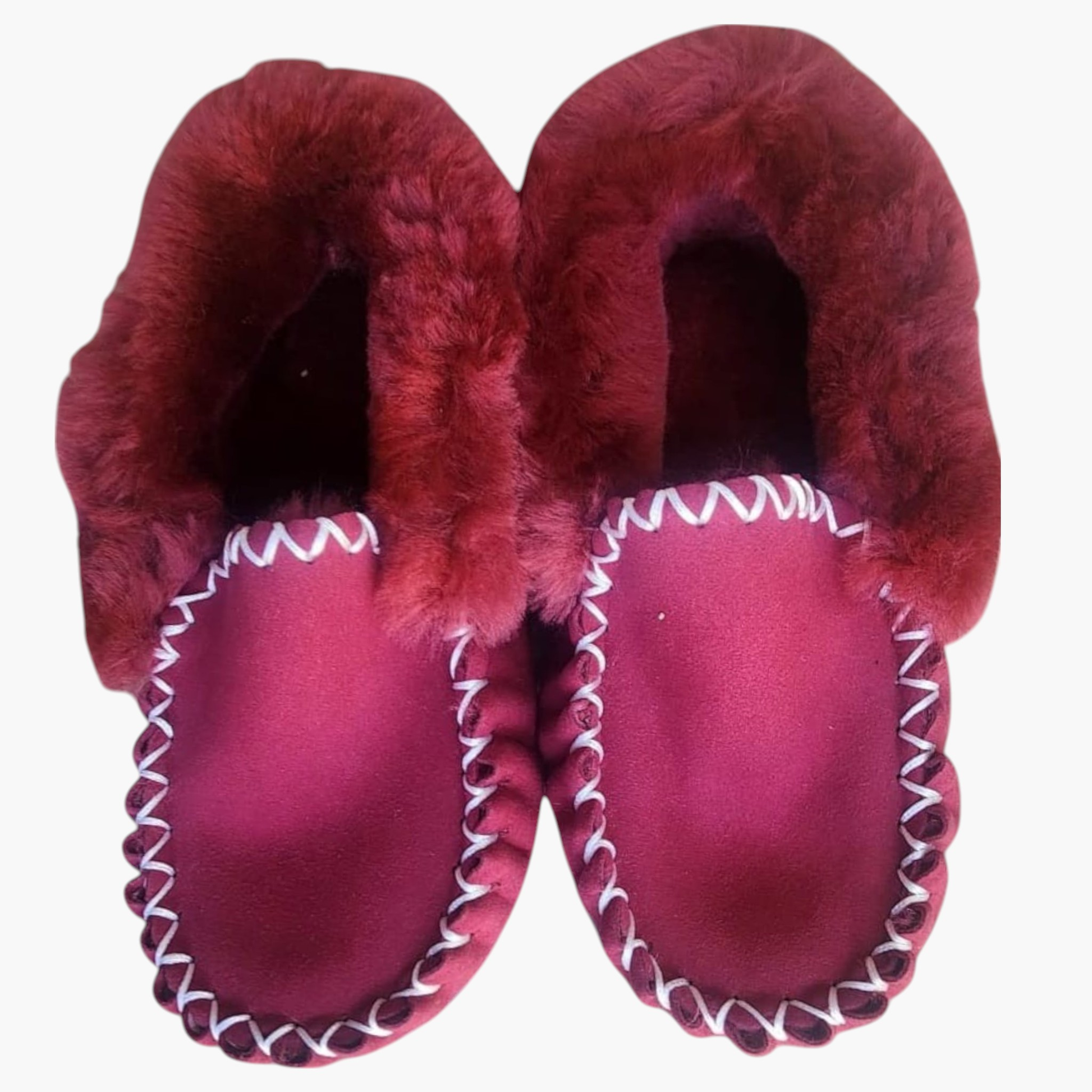 Our SHEEPSKIN MOCCASINS are available in a variety of colors, including this vibrant red option. Made from high-quality sheepskin, these moccasins are not only stylish but also incredibly comfortable. Perfect for any occasion, they're a must-have addition to your footwear collection.